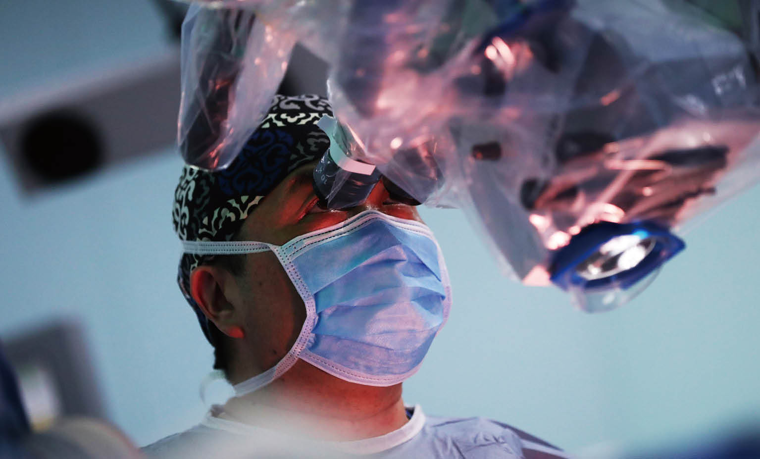 分子可視化手術導航系統(tǒng),使“不可見”的病理診斷數(shù)據(jù)真正“ 可見”,實現(xiàn)了針對神經(jīng)腫瘤分子級別的切除。圖為毛穎教授手術